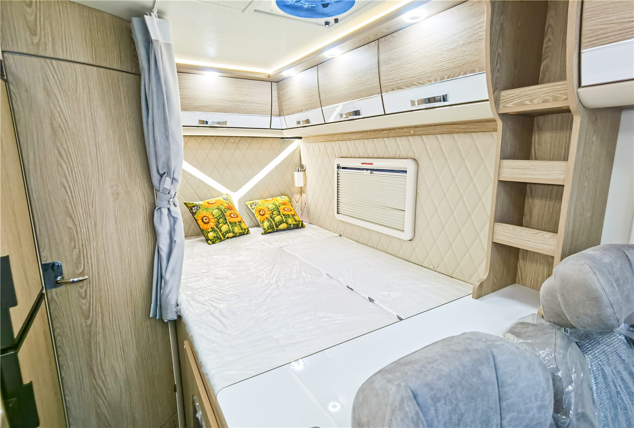 | 正副駕駛椅包 (中間菱形格) | 豪華衛(wèi)浴間 (ABS吸塑工藝) | 升降桌板(進(jìn)口單腿) | ||||||