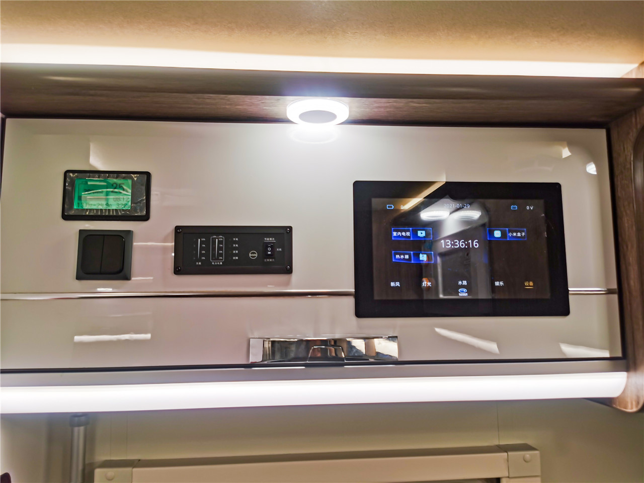 | 12V800AH鋰電池系統(tǒng) | 智能水電中央控制系統(tǒng) | 室內(nèi)5V房車專用插座(3個(gè)) | ||||